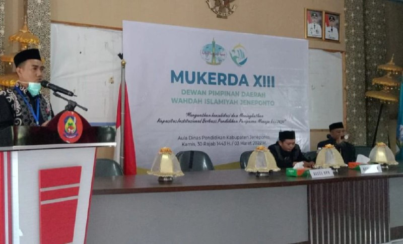 Musyawarah Kerja Daerah (Mukerda) XIII Dewan Pimpinan Daerah (DPD) Wahdah Islamiyah Jeneponto bertempat di Aula Dinas Pendidikan Kabupaten Jeneponto berjalan lancar (03/03/2022). Mukerda yang dilaksanakan setiap tahun ini bertujuan untuk mengevaluasi pencapaian program kerja sebelumnya dan menyusun serta memaparkan program kerja dakwah selanjutnya. Mengangkat tema “Menguatkan Konsolidasi dan Meningkatkan Kapasitas Institusional Berbasis Pendidikan Paripurna Menuju visi 2030.”
